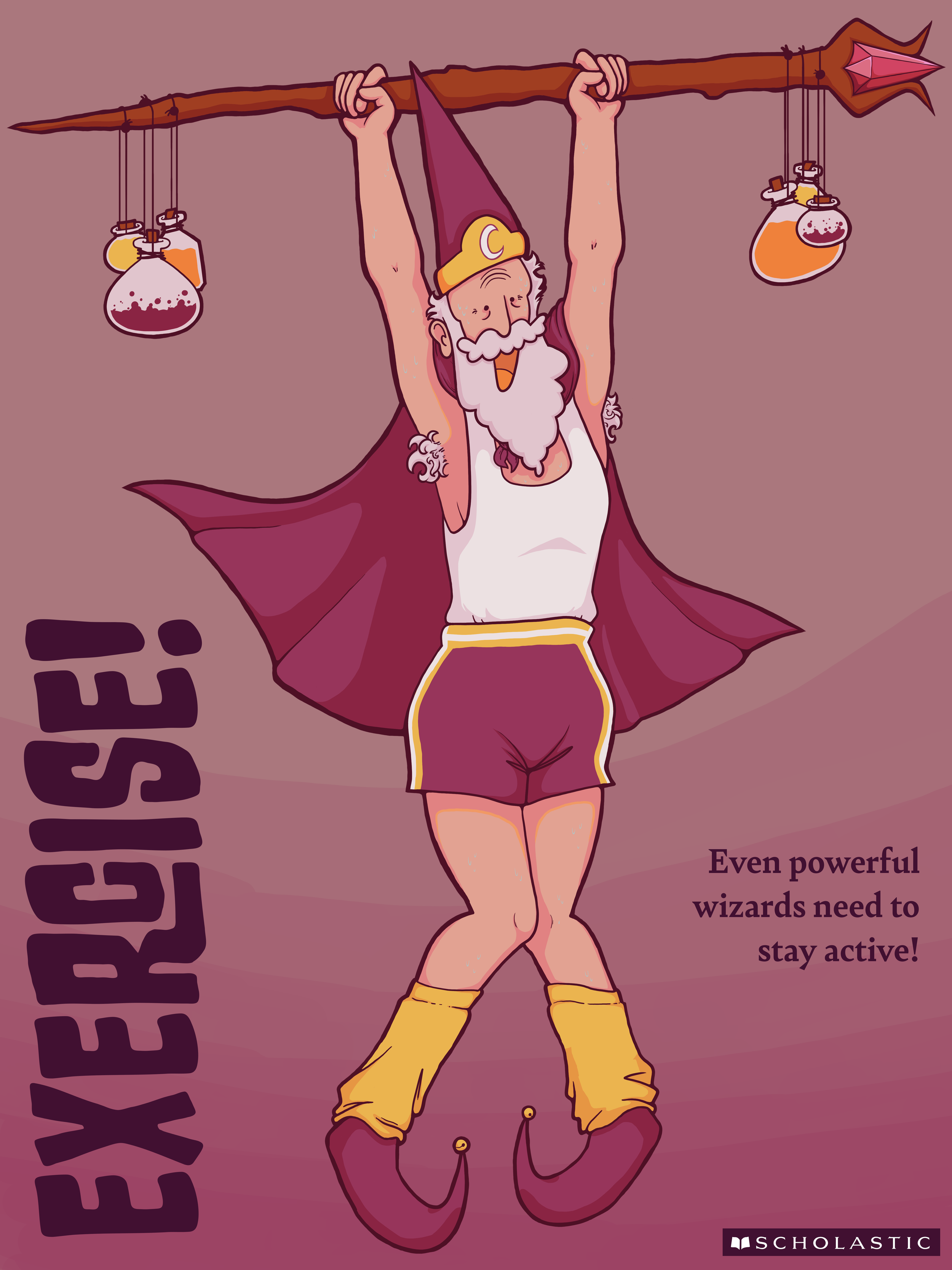 Through personal experience and research, I noticed that most children’s educational posters are either fully typographic or use stock images, so in the Wizardly Wisdom Series I aimed to create a set of illustrated educational/inspirational posters. These posters are meant to be hung in a grade school classroom, and aim to motivate students in a silly and whimsical way by mixing our modern world with medieval fantasy.